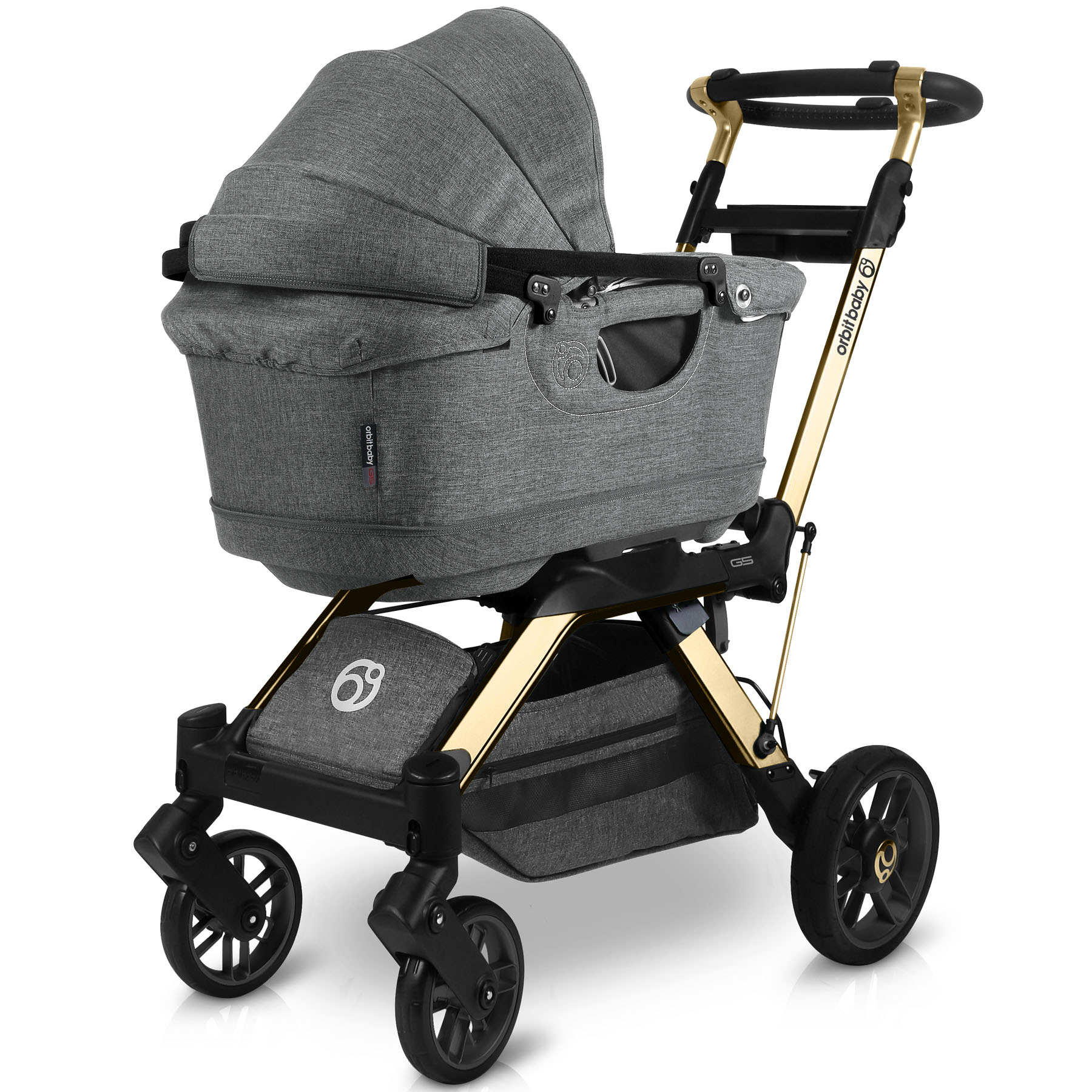 Шасси Orbit Baby G5 легко складывается и самостоятельно стоит в сложенном положении.